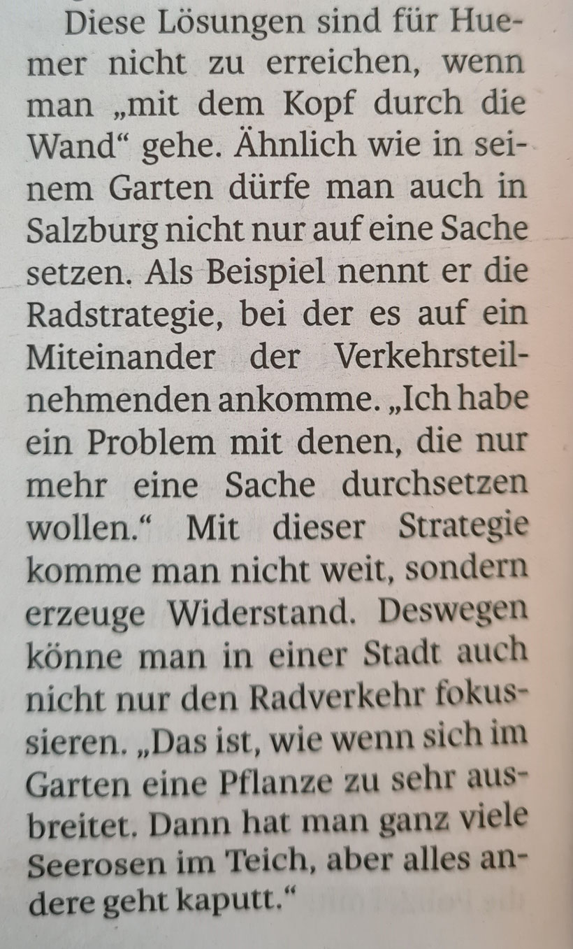 Salzburg ist Schlusslicht bei der Windenergie, hinkt bei Photovoltaik, solarer Warmwasseraufbereitung, Energie-Beratung, Energie-Effizienz, usw. sogar im Vergleich mit anderen Bundesländern hinterher. Es gibt Null Engagement der Mehrheitspolitik für eine nachhaltige Energiewende, allerhöchstens Erfüllung lästiger Mindestpflichten. Aber die letzten Flüsse und Flußabschnitte des Landes in Beton gießen, das können sie.