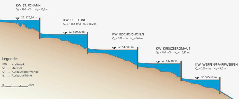 Graphik: Salzburg AG. Die Staukette reicht ihnen aber nicht. 2023 soll das Kraftwerk Stegenwald dazu kommen. Es geht weiter...